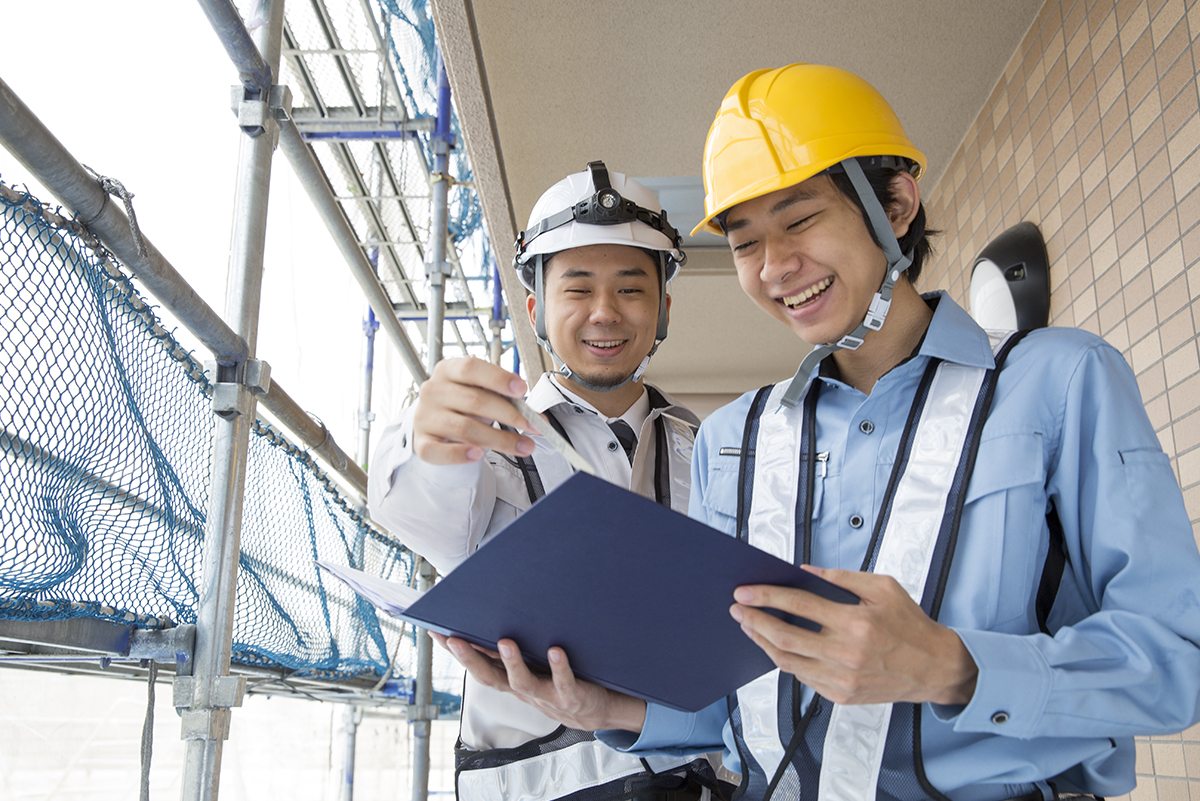 外壁タイルのヒビや浮きを調査で早期に発見し、剥落事故を防ぐために適切な補修・改修を行います。
